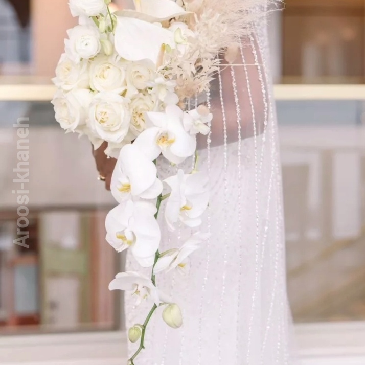 این سبک دستهگل عروس، طرحی به شکل اشک وارونه دارد که در قسمت بالا پهنتر و گردتر است و هرچه به سمت پایین میآید باریکتر میشود و به مانند آبشار، روی دستان شما میریزد. گلهای ارکیده برای این دستهگل بسیار مناسب هستند زیرا به خودیخود، حالت آبشاری دارند.