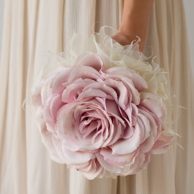 این مدل دستهگل عروس با استفاده از گلبرگهای جداشده از چندین گل یکسان، دیزاین میشود. به این ترتیب که گلبرگها را با استفاده از چسب یا سیم در کنار یکدیگر قرار میدهند تا به شکل یک گل بزرگ و رویایی دربیاید.