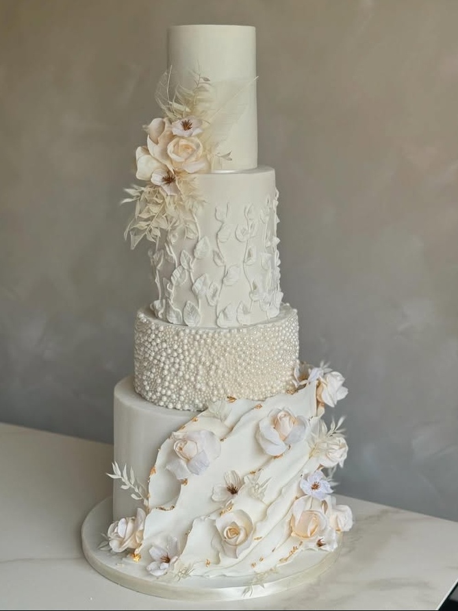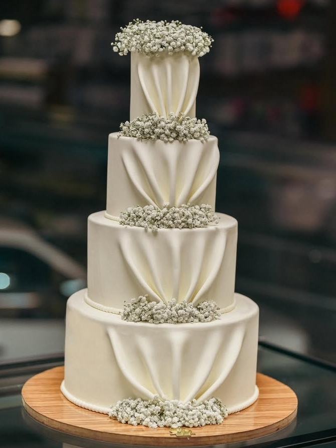 اگرچه خمیر خوراکی فوندانت ظاهر منحصر به فردی به کیک عروسی شما میبخشد و استحکام کیک را بیشتر میکند اما اغلب افراد مزهی آن را نمیپسندند و کنار میگذارند. علاوه بر این این خمیر باعث افزایش وزن کیک عروسی میشود که درنتیجه هزینهی بیشتری را متحمل خواهید شد.