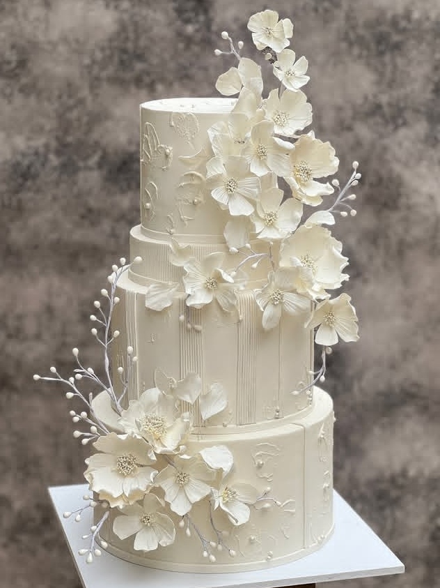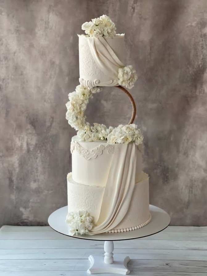 کیک عروسی گلدار میتواند دارای گلهای تازه، مصنوعی یا خوارکی باشد. شما میتوانید گلهای کیک را با تم عروسی و حتی با دستهگل عروسی خود تنظیم کنید تا ظاهر شیک و جالبی ایجاد شود.