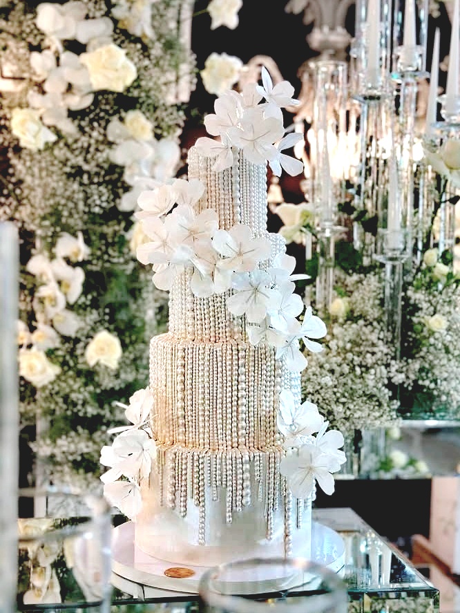 اگر دنبال یک کیک با ظاهری شیک هستید، احتمالاً این مدل کیکهای عروسی را میپسندید. ورقههای طلا خوراکی، مرواریدهای خوراکی و جواهرات از جمله مواردی هستند برای تزئین این کیکها استفاده میشوند.
